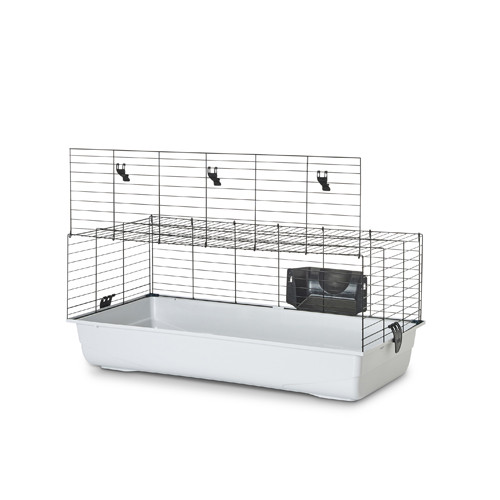 Az Ambiente ketrec kiváló otthont biztosít kisállatának, és Önnek is nagy kényelmet nyújt. A nagy nyílású ajtó teljesen kinyitható, így az etetés és a tisztítás gyorsan elvégezhető. A pattintós rendszernek köszönhetően az alsó tálca teljesen eltávolítható. A ketrechez szénatartó is tartozik. Az Ambiente 120 cm tengerimalacok és törpe nyulak számára alkalmas.