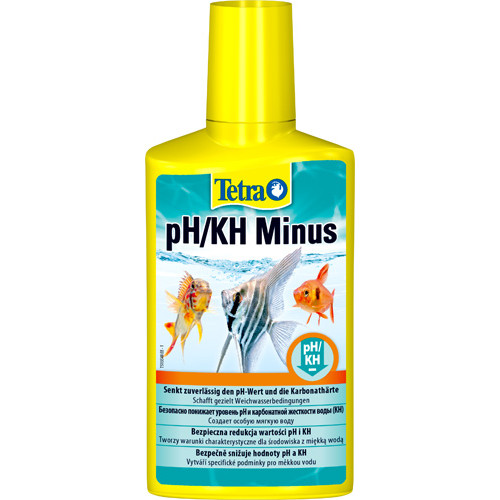 A legtöbb trópusi halat olyan vízben kell tartani, melynek a KH értéke pontosan 4° dKH, a pH értéke pedig 7.5 alatt van. Hogyan lehet csökkenteni a KH és a pH értéket: Adagoljon maximum 25 ml Tetra pH/KH Minus-t az akvárium vizéhez 100 literenként. A kívánt KH érték eléréséhez ismételje meg ezt 2-3 naponta. Ez az eljárás alkalmanként 2° dKH értékben csökkenti a karbonát keménységet. A kezelés alatt a vizet levegőztetni kell. Az esetleges CO2 adagolást be kell szüntetni ez idő alatt. Ellenőrizze rendszeresen a víz karbonát keménységét, és biztosítsa, hogy ne csökkenjen 2 - 4° dKH érték közé, mert ez veszélyes mértékben lecsökkenti a pH értéket. A KH és a pH értékek hosszútávú stabilizálása: Adagoljon 5 ml Tetra pH/KH Minus-t az akvárium vizéhez 100 literenként 2 vagy 3 naponta. Így a víz KH értéke esetenként 0.4° dKH-val csökken. Ez a rendszeres kezelés biztosítja, hogy a KH érték fokozatosan és folyamatosan csökken.